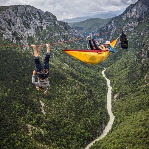 A képen egy szakadékot átugró udvari bolond látható. Te mit gondolsz, sikerül neki a másik sziklára átérnie épségben vagy beleesik?